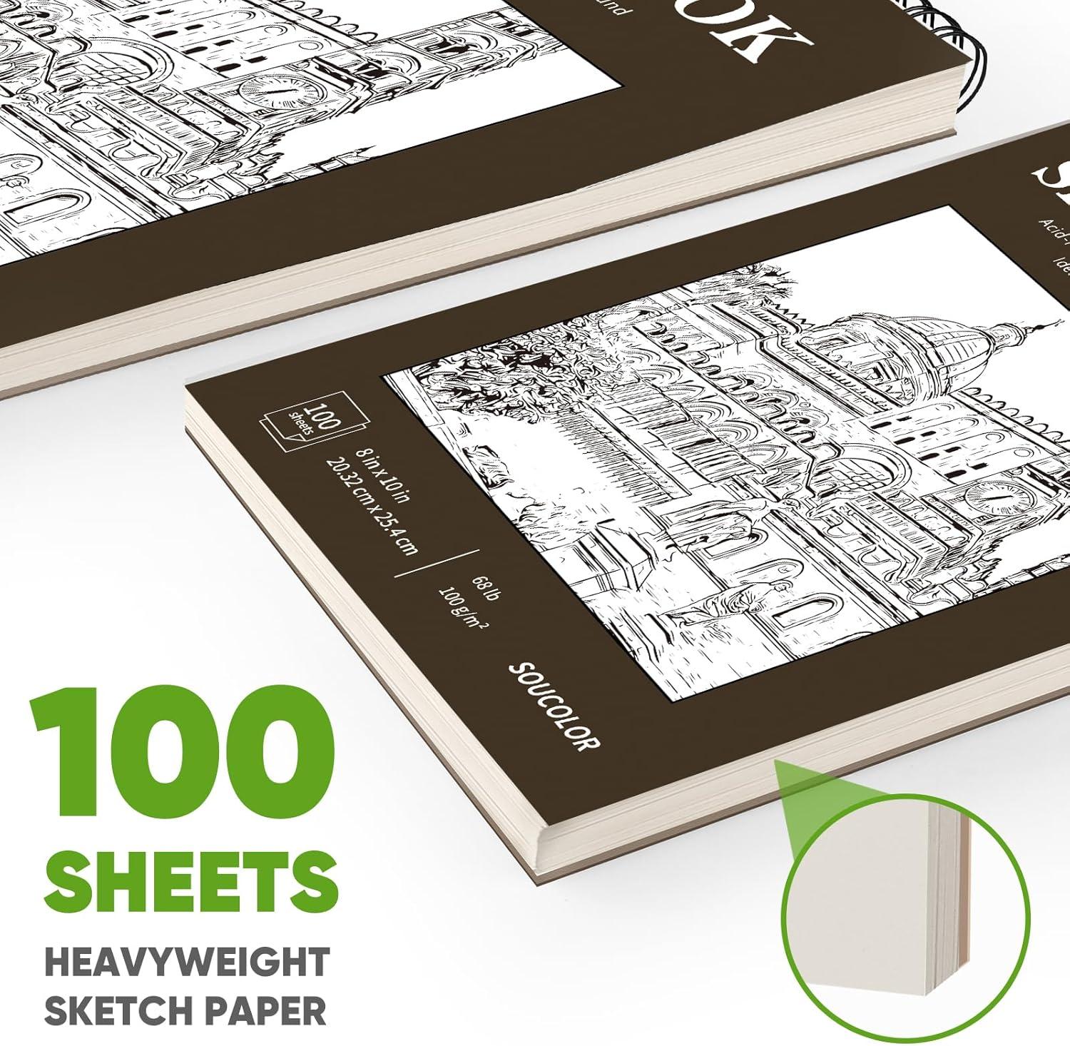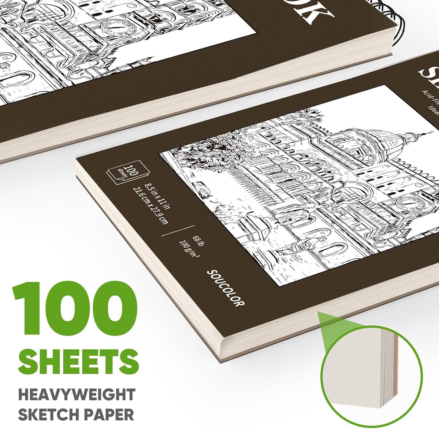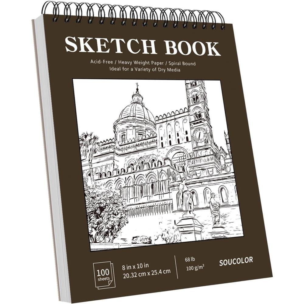 Soucolor 11″ x 14″ Large Sketchbook, 100 Sheets 68lb/100gsm Top Spiral Bound Large Sketch Pad, Acid Free Big Sketch Paper for Drawing, Illustration, Art Class Students(Brown)