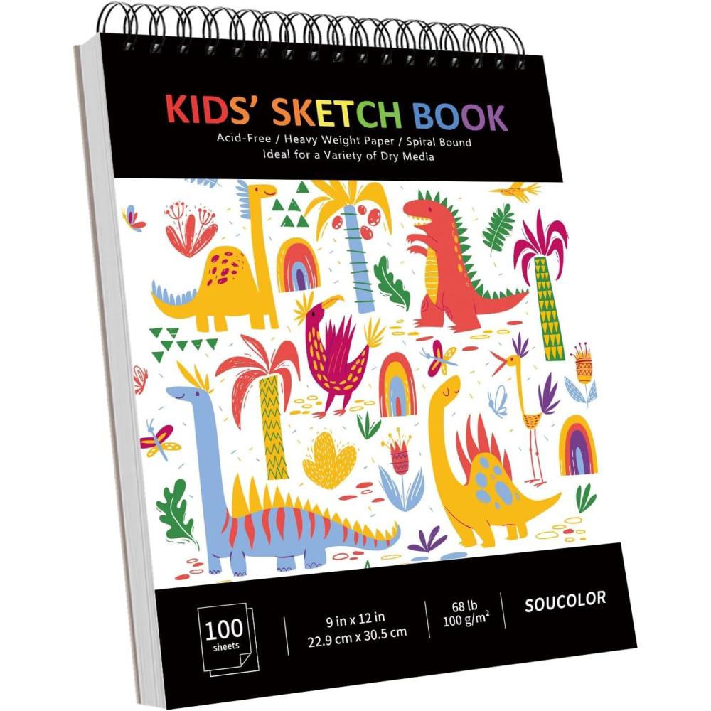 Soucolor Sketch Book, 9″ x 12″ Sketchbook, 100 Sheets (68lb/100gsm) Spiral Bound Sketch Pad, Drawing Pads, Art Supplies, Sketch Book